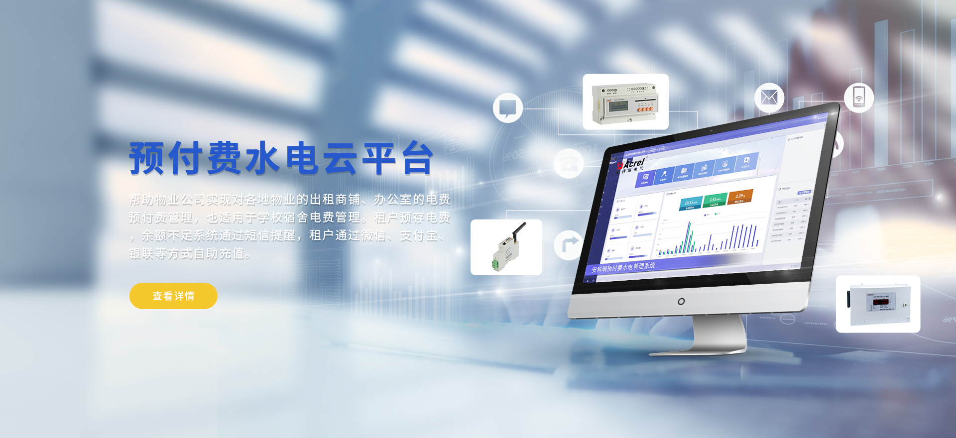 安科瑞提供的解決方案包括Acrel-EIoT能源物聯網云平臺、變電所運維云平臺、安全用電管理云平臺、環保用電監管云平臺、智慧消防云平臺、能源管理云平臺、工業企業能源管控平臺、遠程預付費云平臺、餐飲油煙監管云平臺、電動汽車/電瓶車充電樁收費管理云平臺、電力監控/無線測溫系統、電能質量治理系統、電氣火災監控系統、消防設備電源監控系統、防火門監控系統、應急照明和疏散指示系統、智能照明控制系統、醫用隔離電源絕緣監測系統等,幫助用戶實現能源智能化、可視化、精細化管理,提高用能效率和用能安全,為企業節能降耗和實現能源數字化建設提供數據服務。